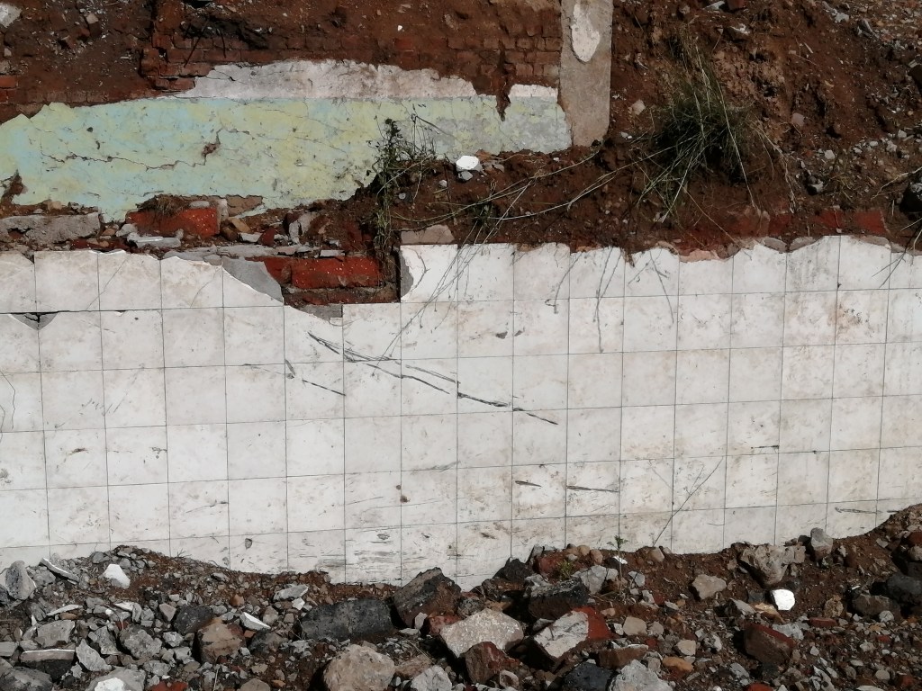 Daphne, my wife came home from shopping in the Garden centre recently and told me that on her way home through District Six she saw that the top soil of the fields had been removed exposing some of the ruins of inside walls of the old houses, and that I should take a look.