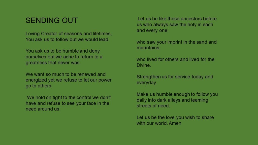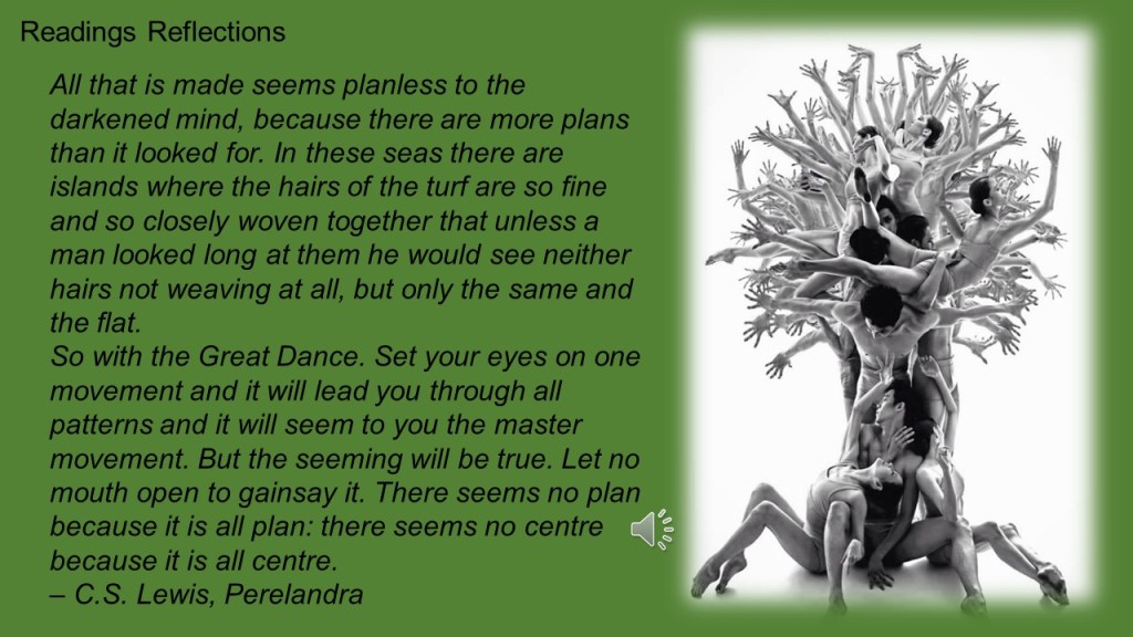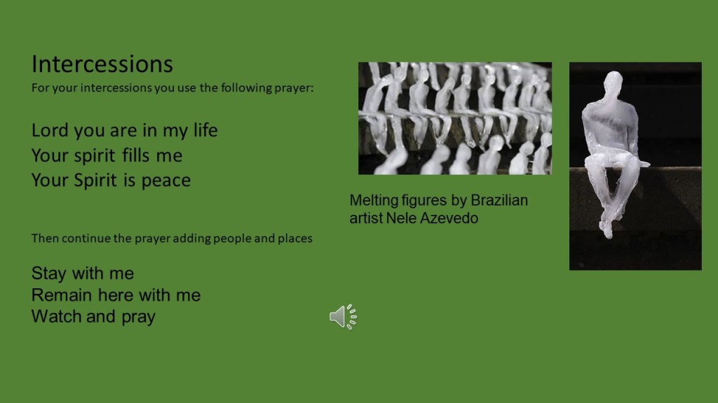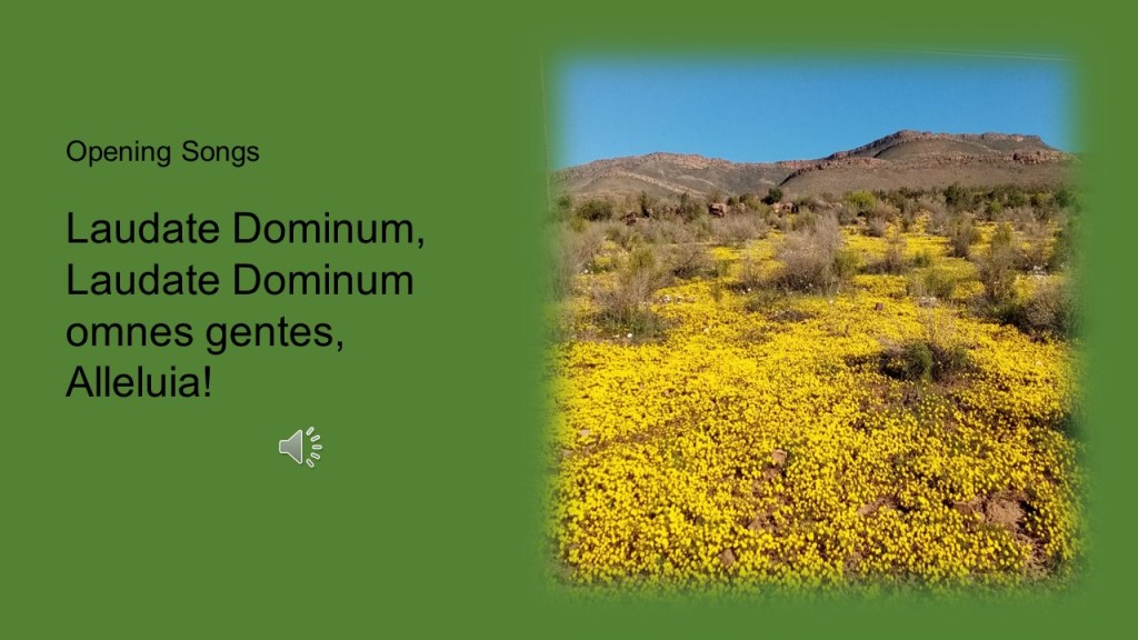 This is a Taize styled Meditation Service which I created for the Season of Creation which falls in the month of September and concludes on St Francis Day on 4 October. The original presentation was in PowerPoint and presented at a Zoom gathering a few weeks ago. About 30 people were present. I have transposed the presentation for this blog, which is more limited than PowerPoint and needs for you to click in the appropriate places – to move the slides along and to click on the chants.