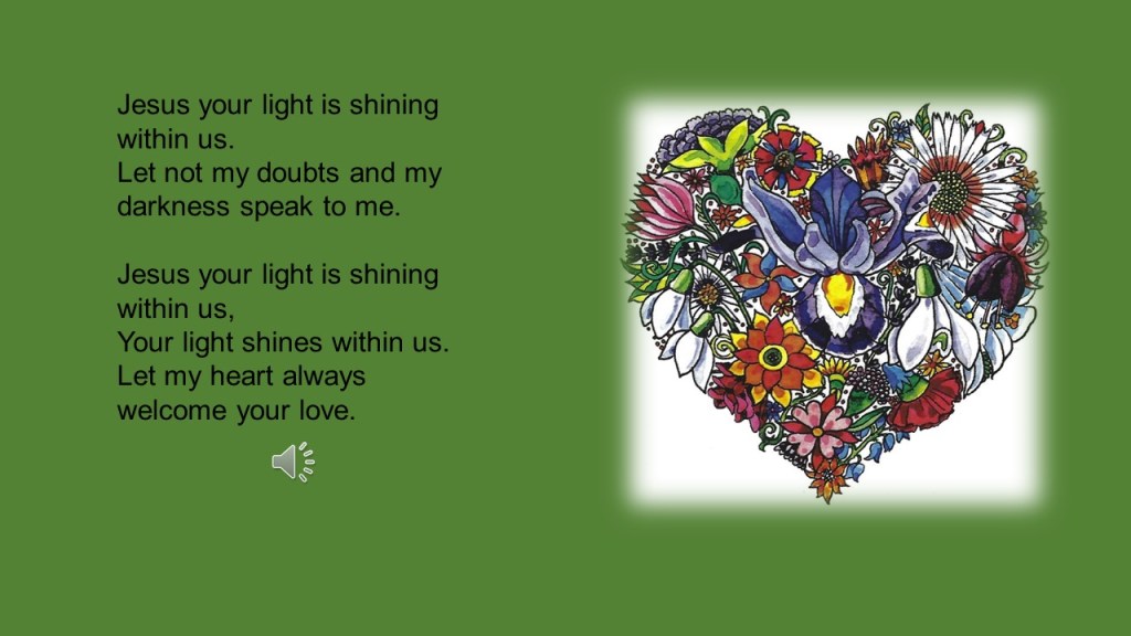 You will find all the Taize chants used in the presentation on YouTube. I was assisted in their presentation by Paddy Attwell and the Meditation Service was presented for the Sunday evening Erin Hall Community in Cape Town, the Western Cape. Images of the Heart and Rose Mandala is by Jane Commin