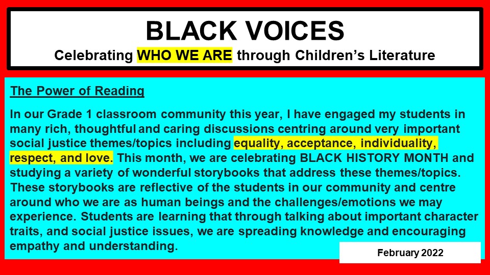 In February, Canada and the U.S.A. celebrate Black History. I am inviting you into the processes of the teaching and learning of Vincent Racanelli, a teacher and his grade I class ( six year olds), made up of many children of refugee families who made their home in Toronto.