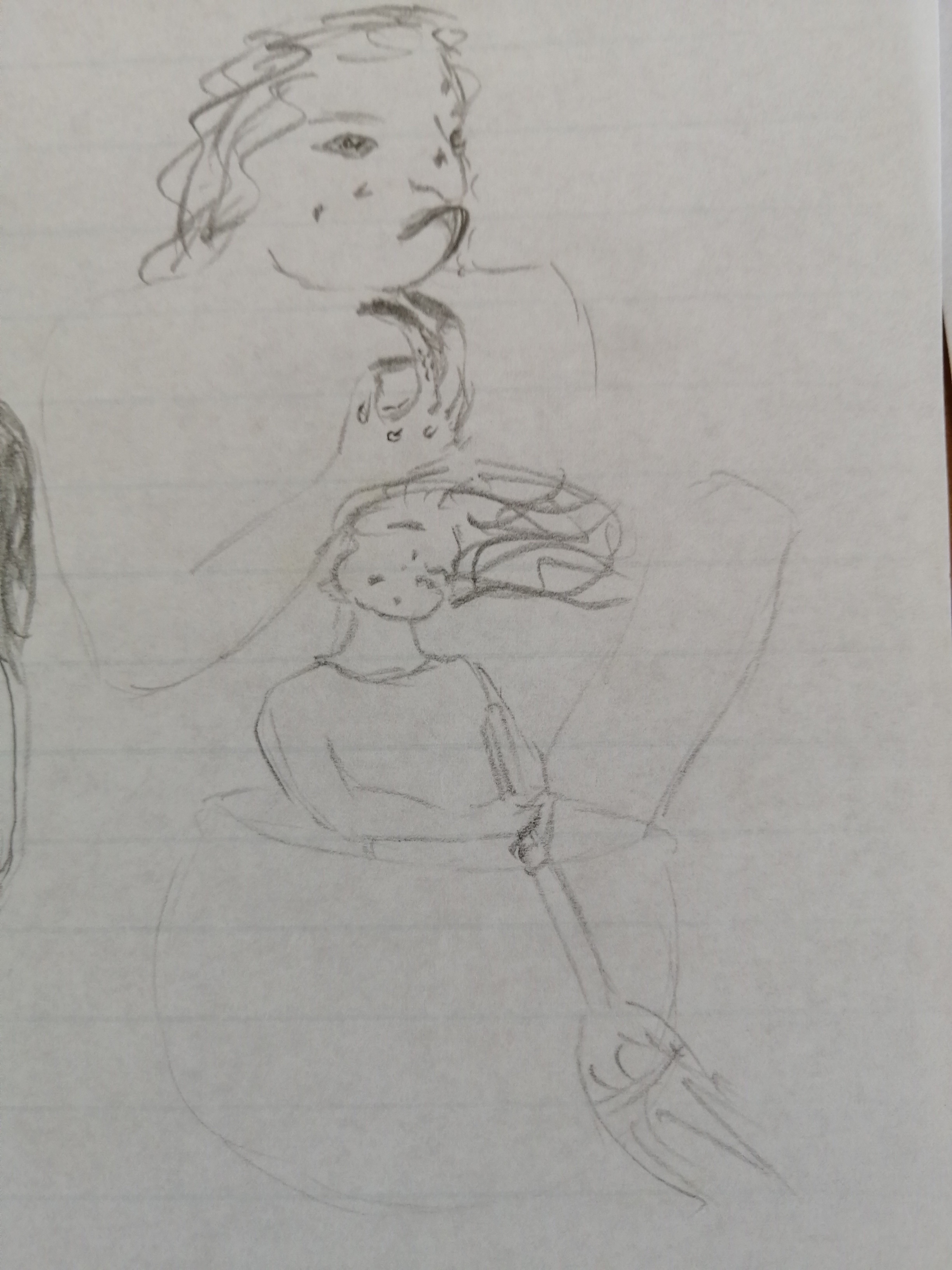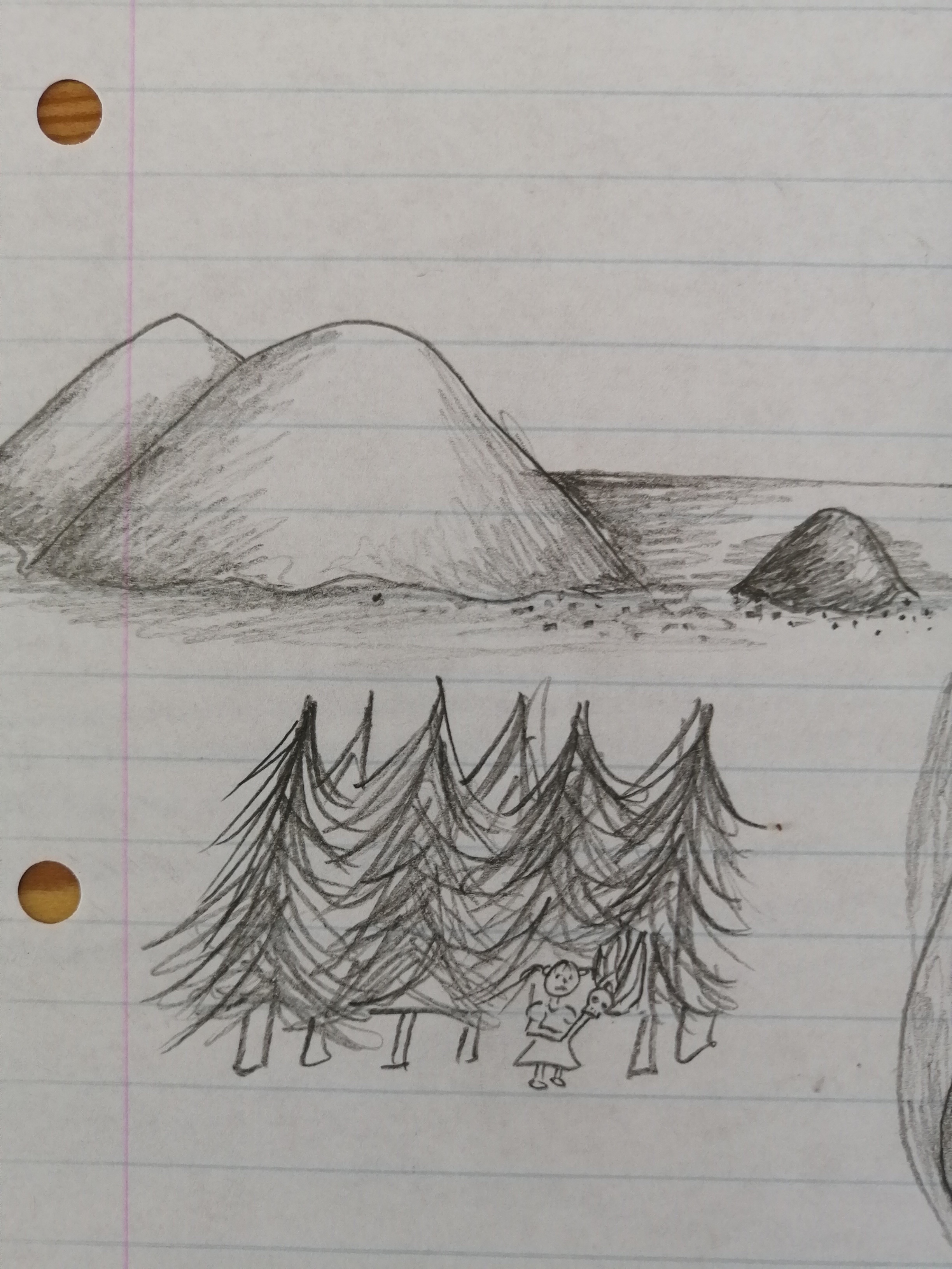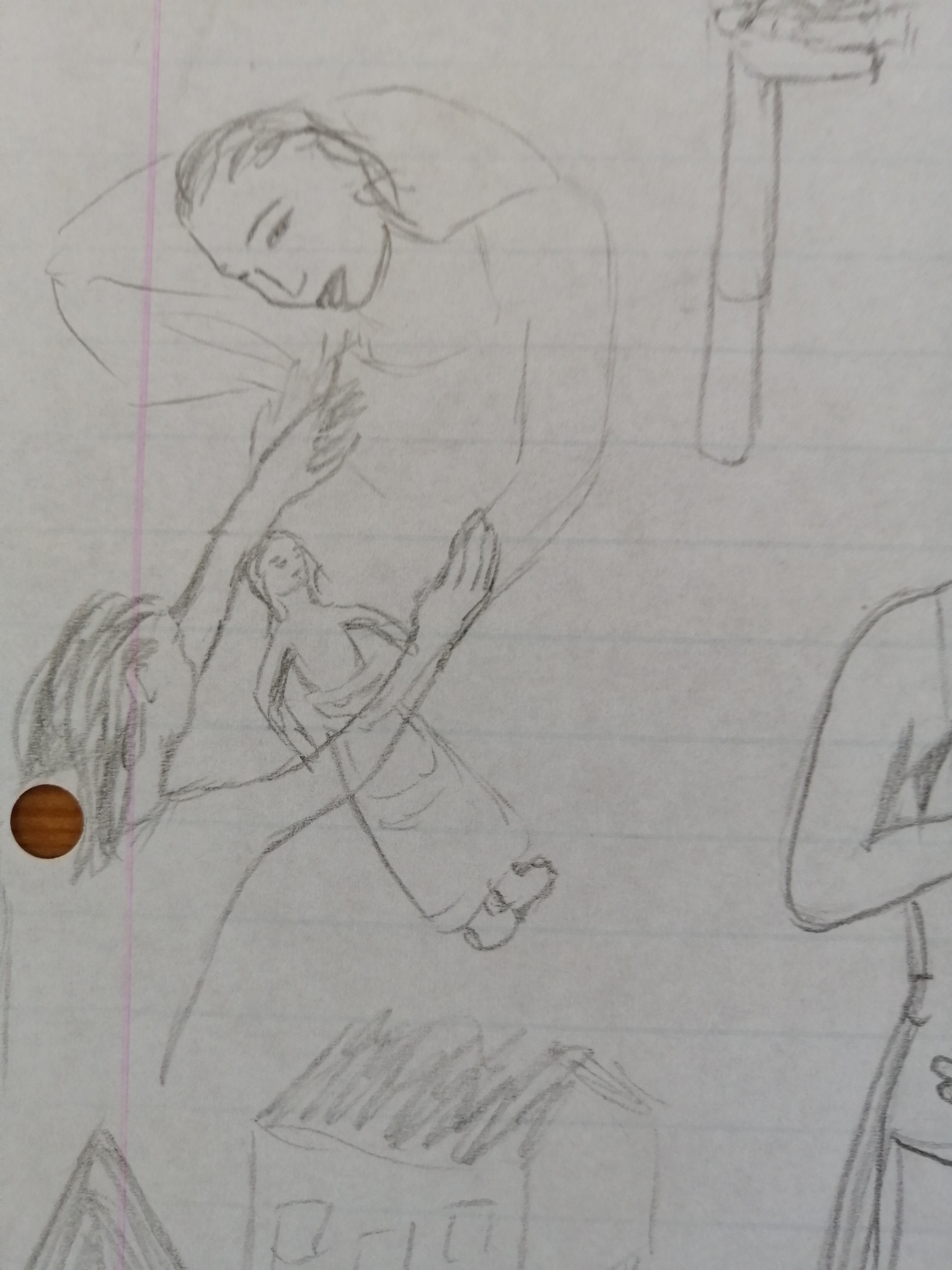 The other day I found the sketches that they did, which I love. I would like to share the sketches and the story with you. They never put their names to the story. I share their pages with you in the same way they shared them with me, adding nothing to them.
