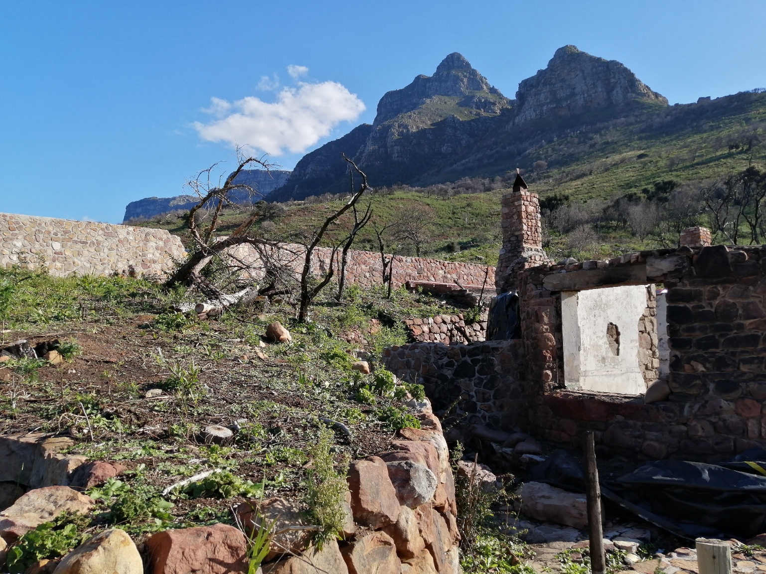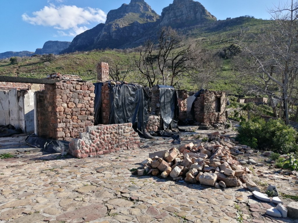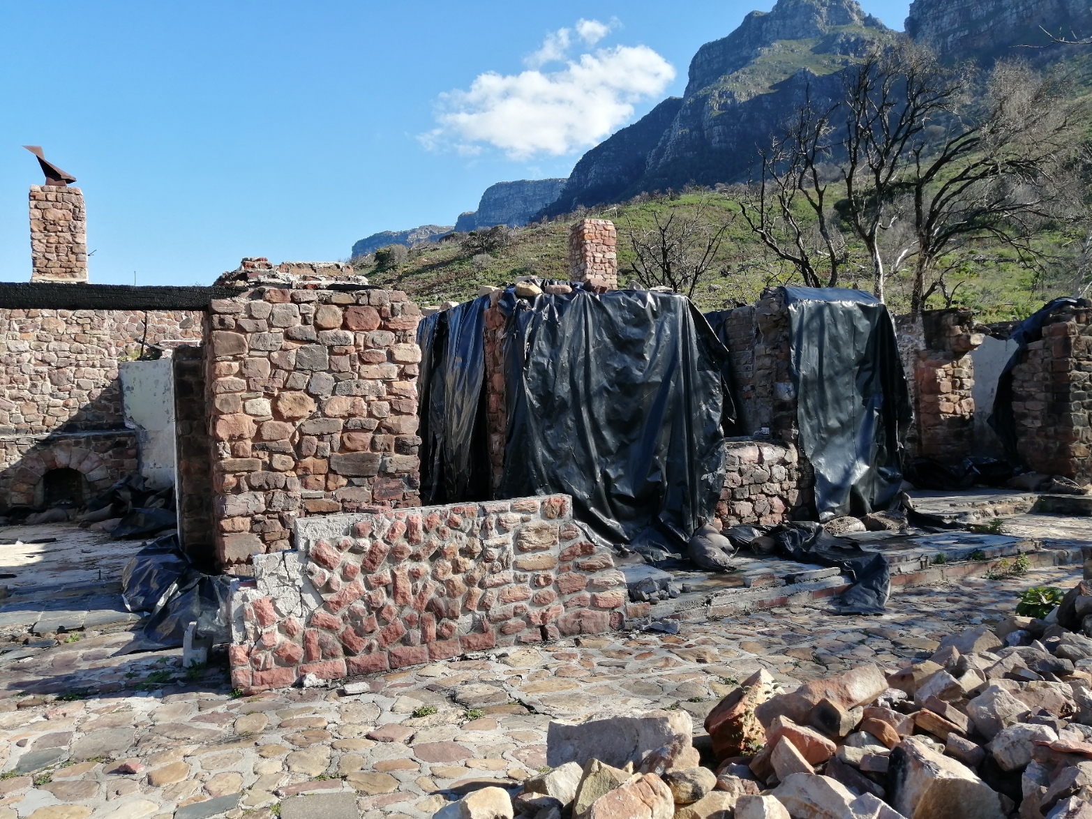 It is so sad that the recent fire has caused so much damage. Almost all the trees are gone. The landscape is slowly recovering. The sandstone walls of the restaurant are still there and no doubt the restaurant will rise again and give much pleasure to other Capetonians.