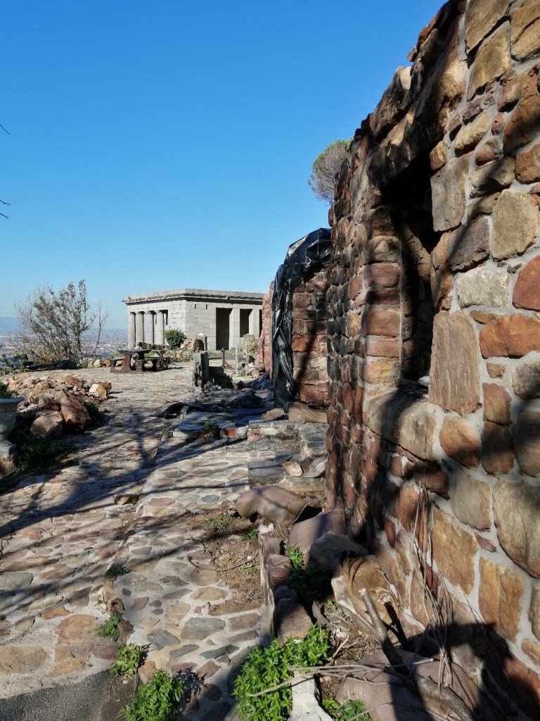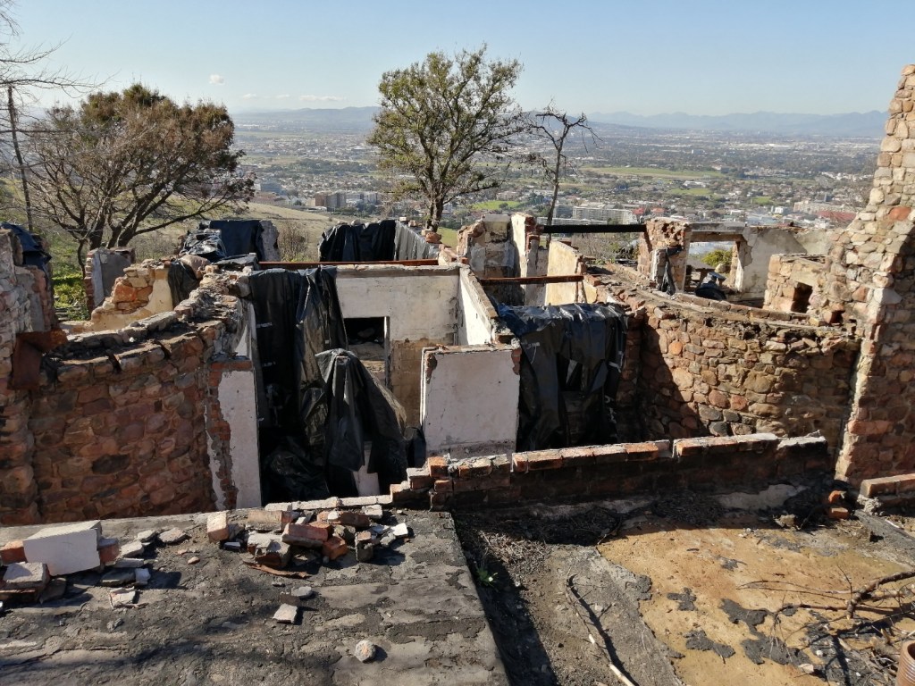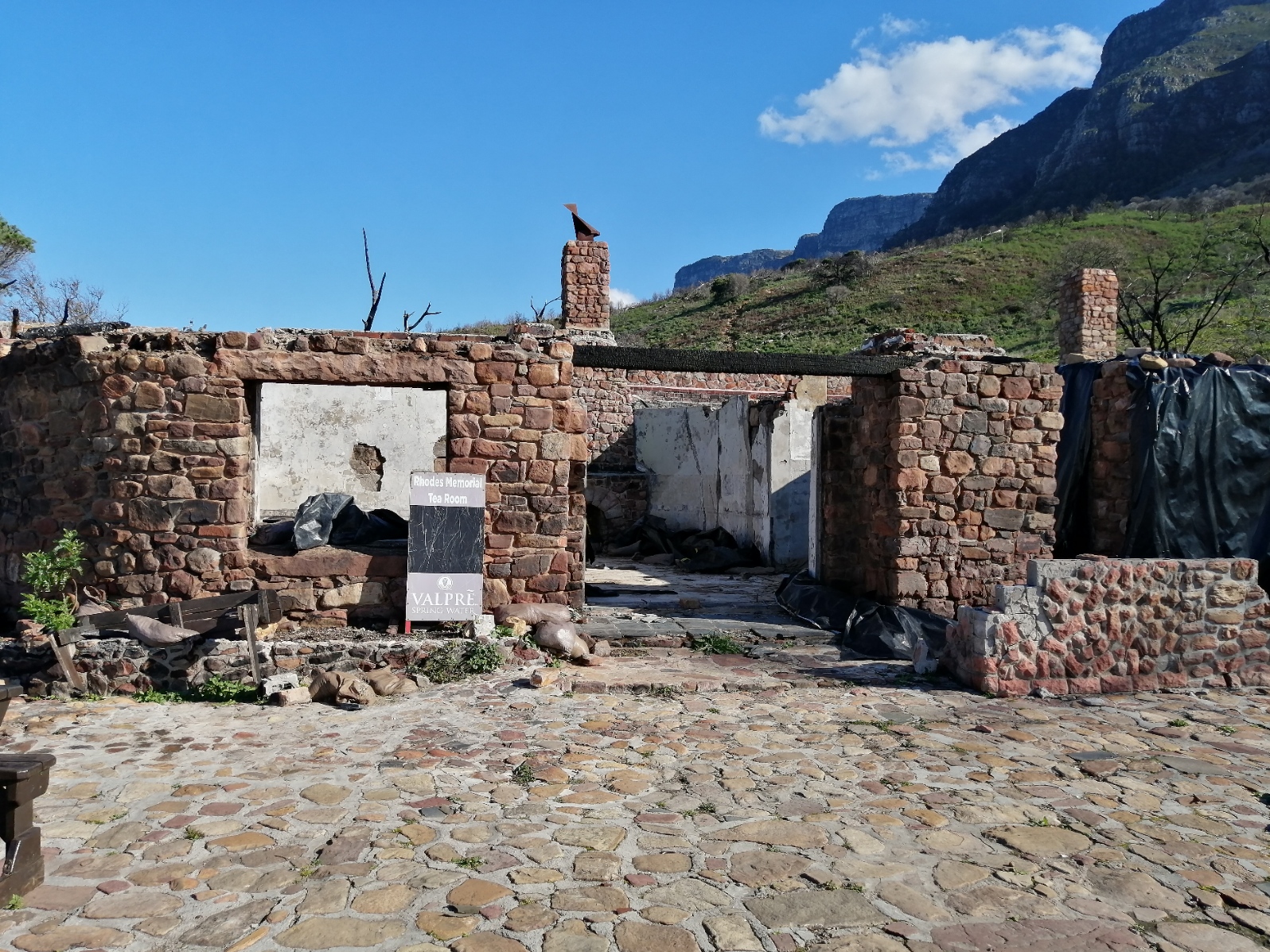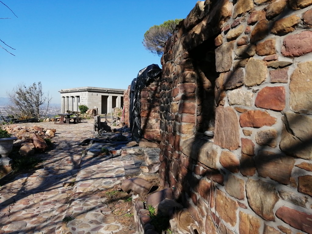 It is so sad that the recent fire has caused so much damage. Almost all the trees are gone. The landscape is slowly recovering. The sandstone walls of the restaurant are still there and no doubt the restaurant will rise again and give much pleasure to other Capetonians.