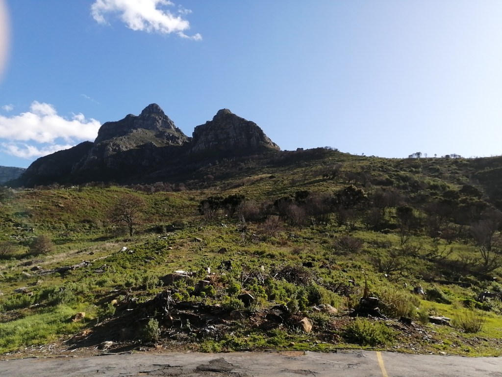 A view of Devils Peak and Table Mountain to the left from Rhodes Memorial car park, Newlands Cape Town