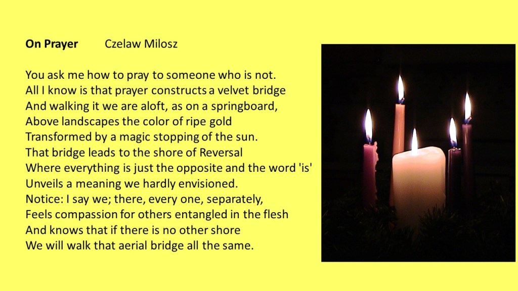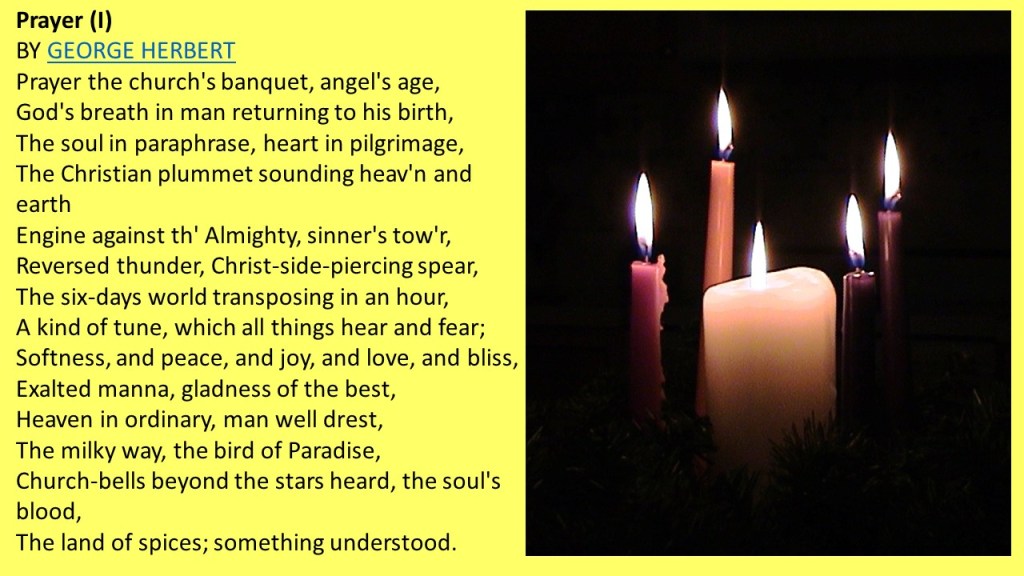 This reading of two poems on prayer emerged from a Whatsapp I sent to my friend Fr Ian. Fr Ian is mostly confined to his home in Simons Town because of his frailty. He was my second Rector when I was a young curate and a great friend and mentor of mine. This blog began when I sent him two poems on the subject of prayer that I had recently discovered and which I thought he would enjoy.