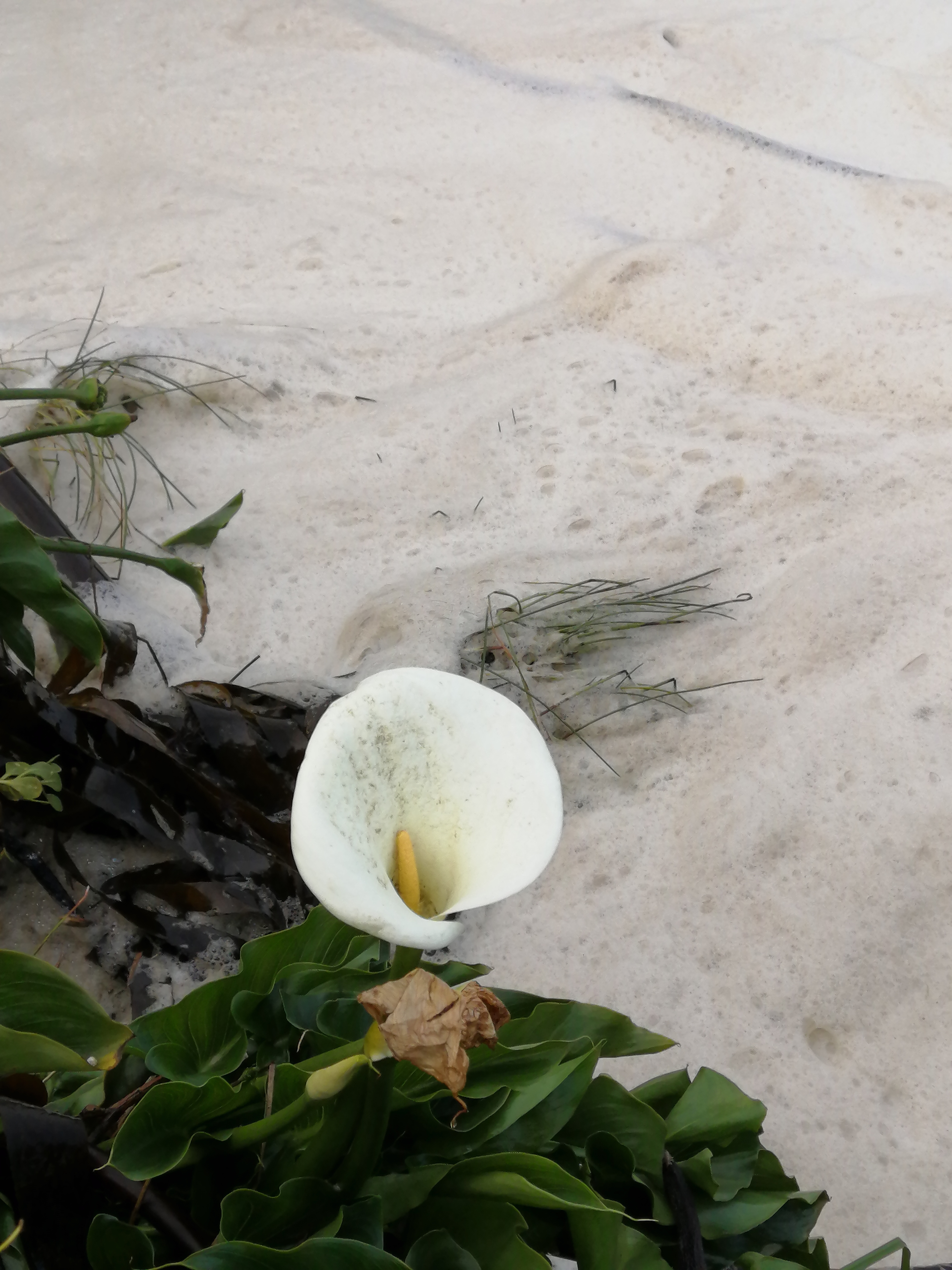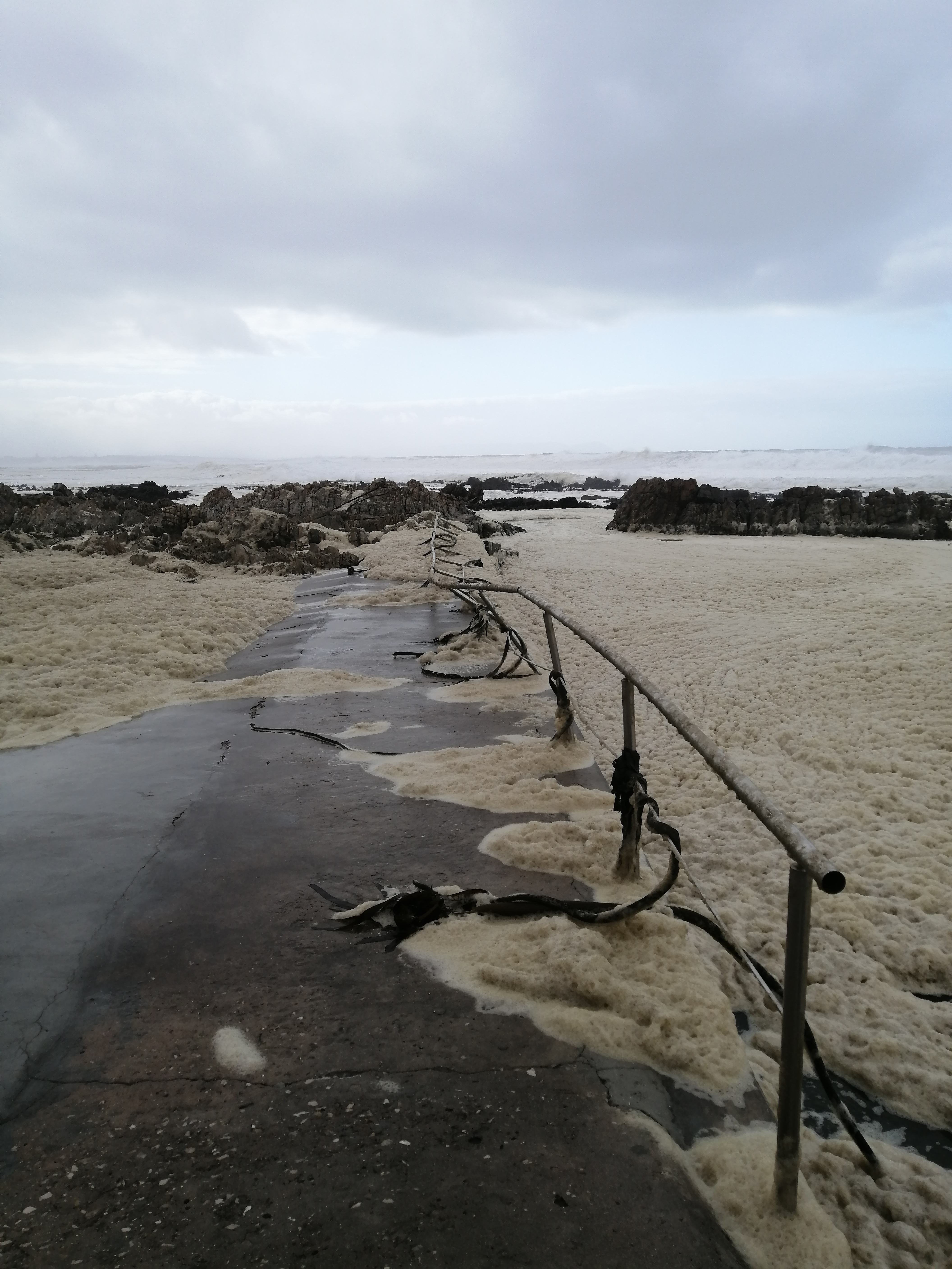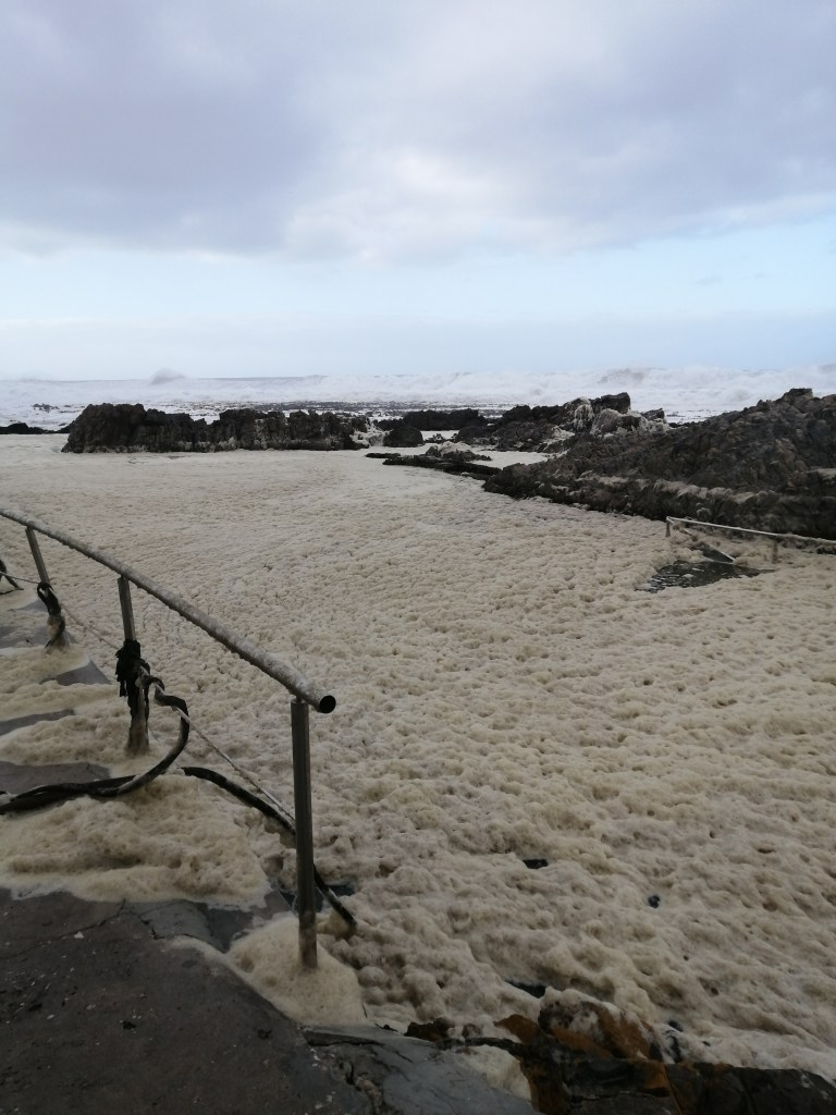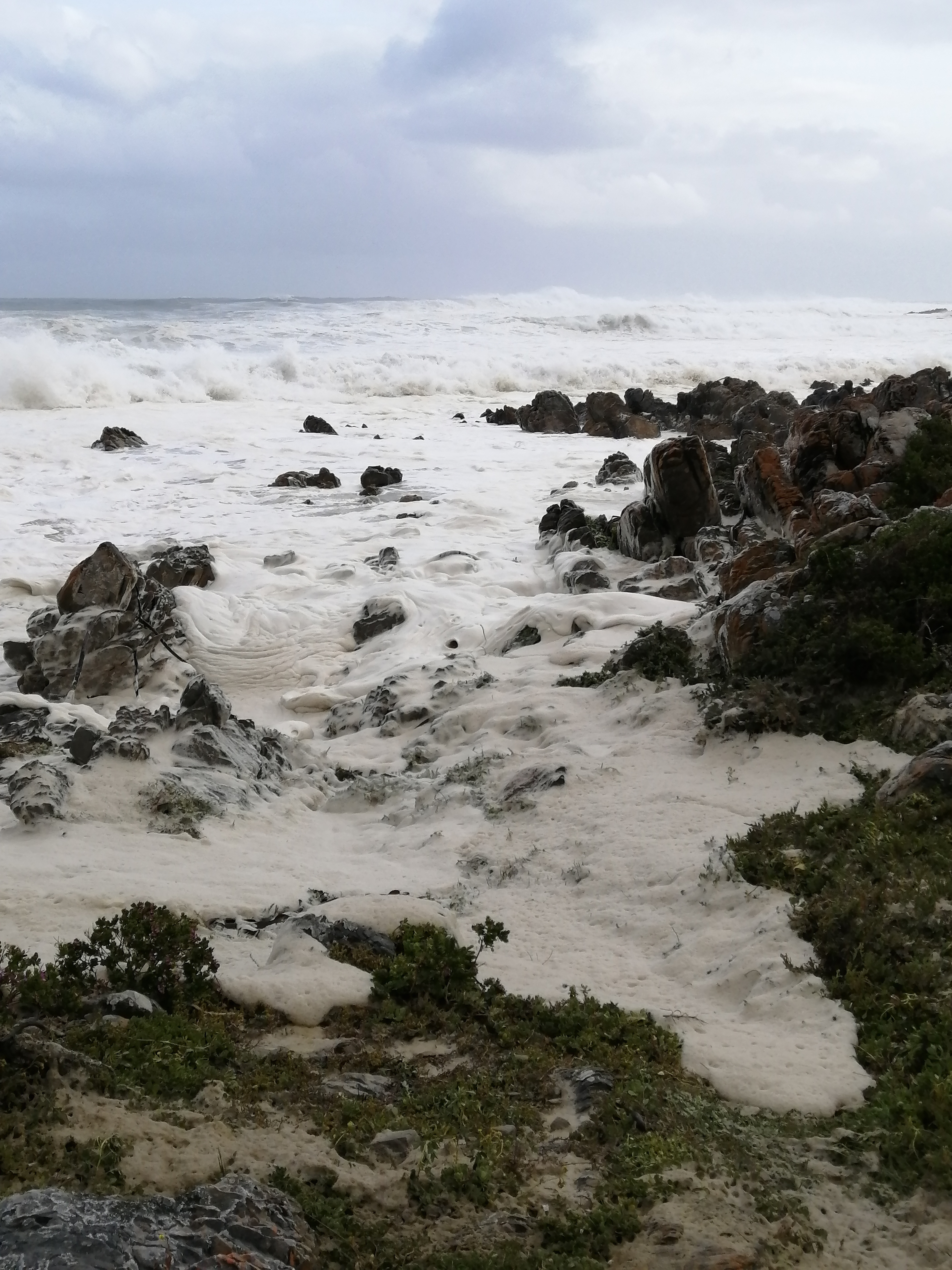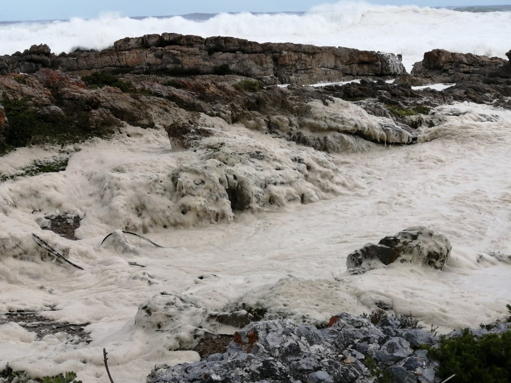 The foam is energy, forming, twisting, spiralling, rushing, groaning, crashing heaving, rolling upon itself and over itself, then raging, charging in a riotous howl, chopping and changing, restless streams of itself gather to a monstrous wave of whiteness in a violent rush of motion to cake and crash all in its way, roiling the stones in its suction so that they cry out against the heave of its inbreathing, leaving a landscape and seascape swirling in glistening snow.