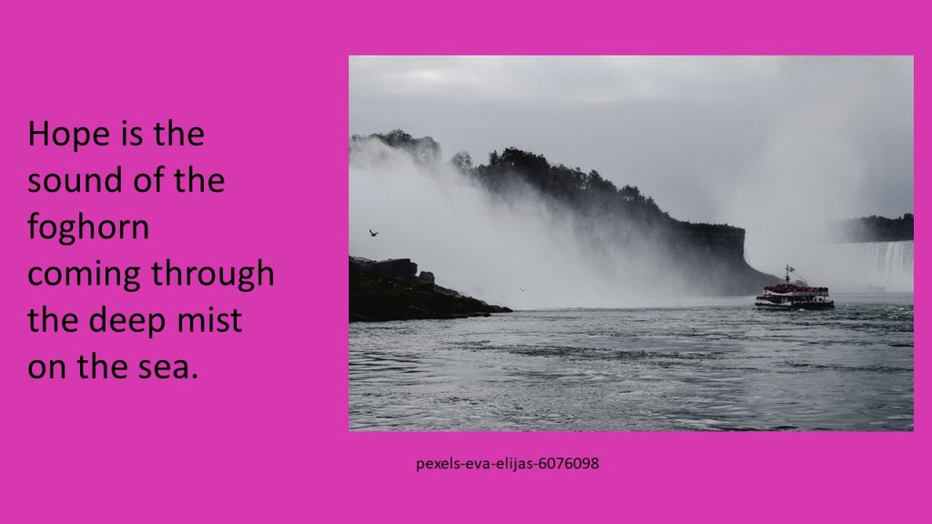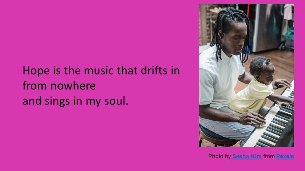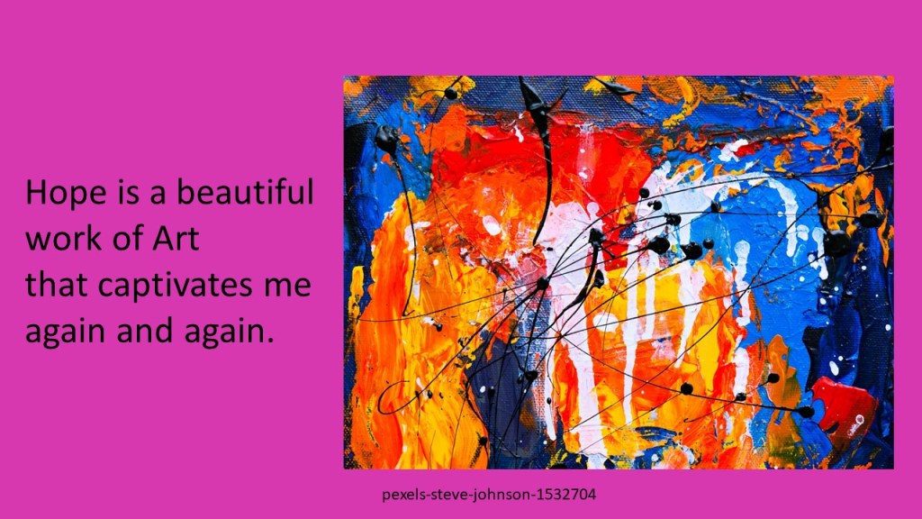 I have always been impressed with this quotation from Vaclav Havel. Hope is something deep within each of us.