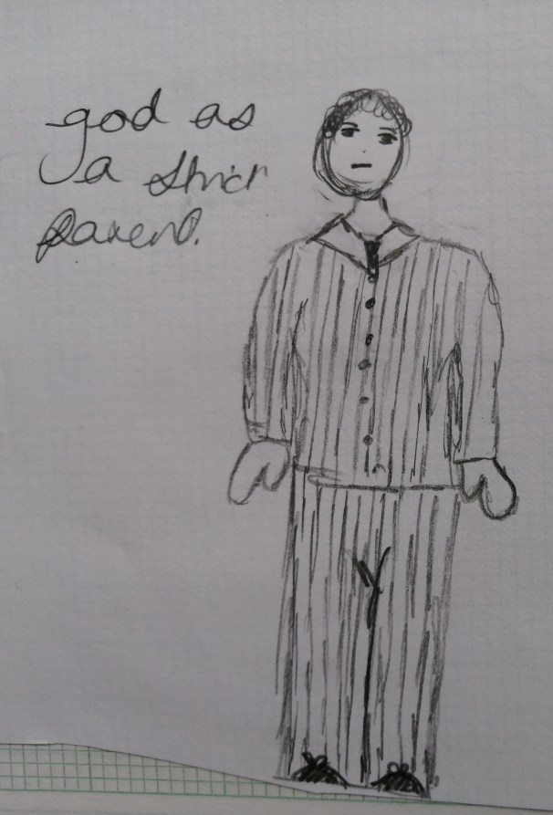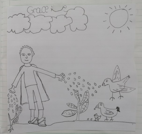 “You have to scale down”, they said. After living in quite spacious houses the time would come for retirement and scaling down. It came for us. We found a little cottage and needed to fit ourselves and our possessions into it. Of course, only those possessions that were really necessary. But in sorting my life out I came across these drawings which I now share with you. They are so delightful. They were done by Grade 3 or 4 learners, I cannot now remember.